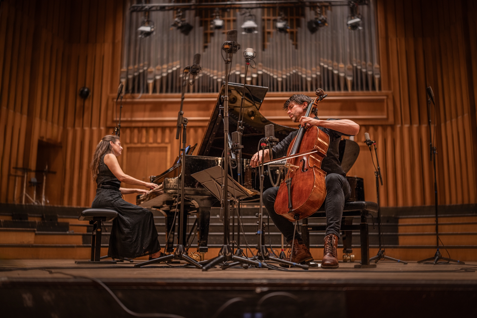 Im Februar 2001 nahm der 1. Solo-Cellist der Wiener Philharmoniker, Franz Bartolomey, die berühmte erste Sonate für Violoncello und Klavier von Johannes Brahms op. 38 in e-moll und ein Jugendwerk, die frühe F-Dur-Sonate von Richard Strauss, im Großen Sendesaal des RadioKulturhauses auf. 25 Jahre später und 2 Jahre nach dem Ableben seines Vaters, präsentieren nun sein Sohn, der Cellist Matthias Bartolomey gemeinsam mit Pianistin Ariane Haering das Album „HOMMAGE“ mit dem gleichen Programm ergänzt durch ein Arrangement von Schuberts Moment Musical Nr. 3.